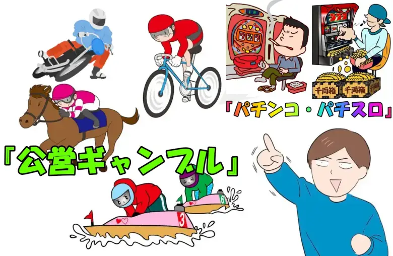 日本のギャンブルと言っても、厳密には“公営ギャンブル”と言われる競馬・競輪・競艇(ボートレース)・オートレース・宝くじ・スポーツ振興くじの6種類に対し、パチンコ・パチスロは厳密にいうとギャンブルの部類に入りません。